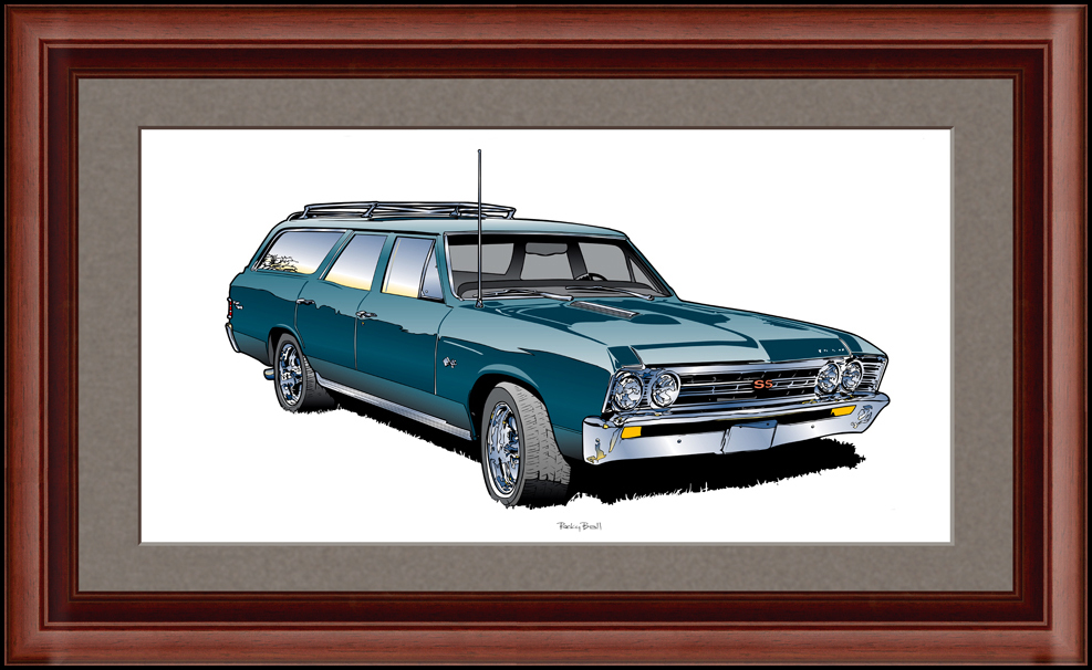 | • Allow 2-4 weeks for final delivery • You will recieve progress reports/sketches as the work progresses • Fits a standard size 24" X 36" frame (easily obtainable at your local frame shop or Hobby Lobby or Michael's) • You will need to send me 1 or more photos • You will need descriptions of MAKE, MODEL, YEAR and COLOR |